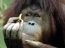 “I wasn’t sure if I should really mention anything…but a large ape has been coming to me out of the forest, almost nightly, and for some time now. What I like so much about him is not having to deal with the whole Spanish thing. What is Spanish anyway? you put an ‘ito’ or an ‘a’ or an ‘o,’ or sometimes a ‘dad’ at the end of English word, and that’s Spanish, pretty much. True there are occasional surprises, like the word “banano.” But think about it, of course a banana is male. Frank and I (he’s so wonderfully direct) often enjoy a kilo or two of bananos together, all in good fun. The locals here prefer them nice and ripe and even feed bananos to their horses.